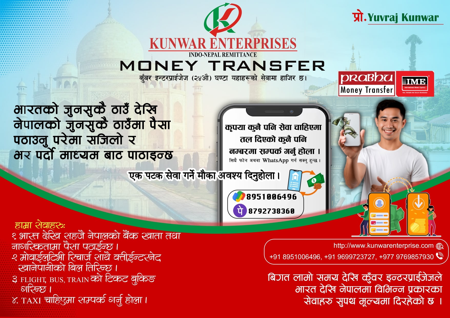 बिगत लामो समय देखि कुँवर इन्टरप्राईजेजले भारत देखि नेपालमा विभिन्न प्रकारका सेवाहरु सुपथ मूल्यमा दिरहेको छ |